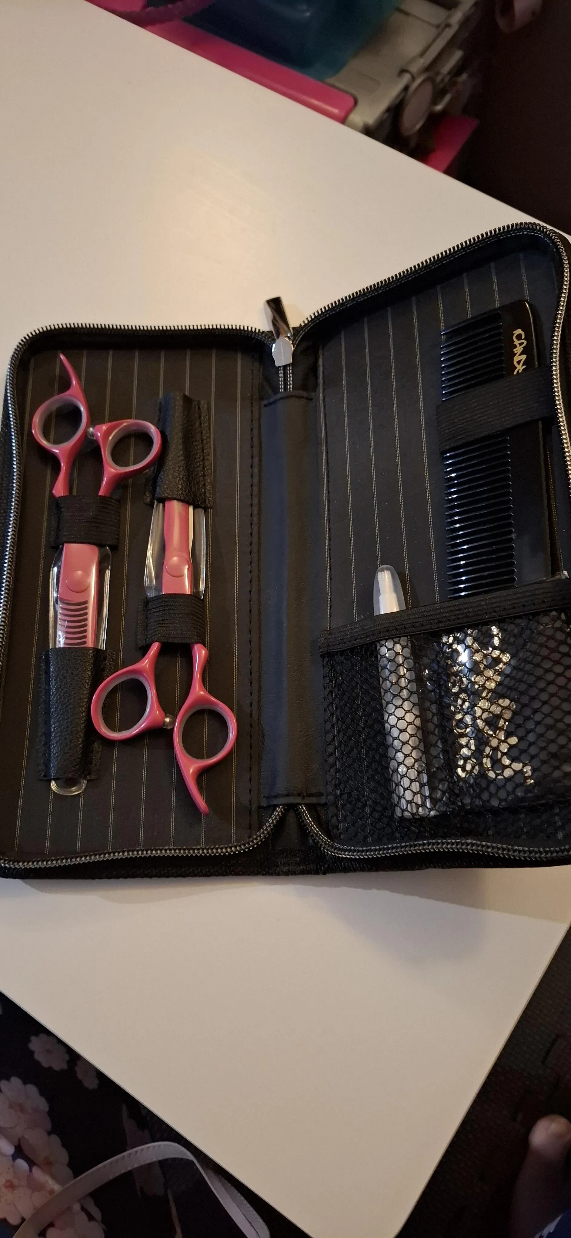 Thank you for your review! We are glad to hear that you are enjoying the color and functionality of your iCandy ELECTRO Sunset Pink VG10 scissor and thinner bundle. We hope it continues to meet your needs. Happy styling!